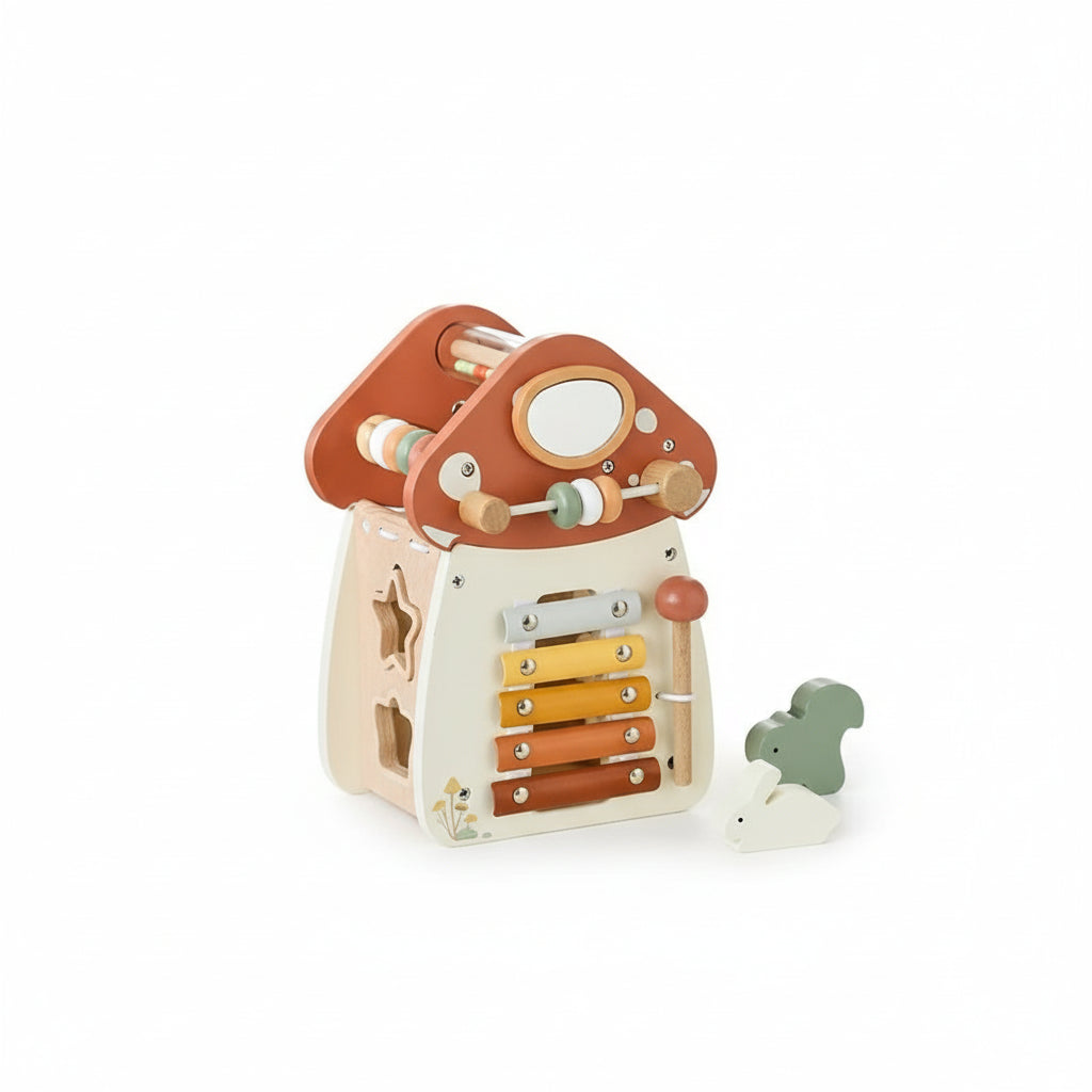 Children can explore musical sounds on the xylophone, sort shapes, spin beads, and watch gears turn, all while developing fine motor skills and problem-solving through hands-on play. Its smooth wooden finish and rounded edges make it safe for small hands, while the charming woodland animal theme adds a timeless touch to your playroom decor.